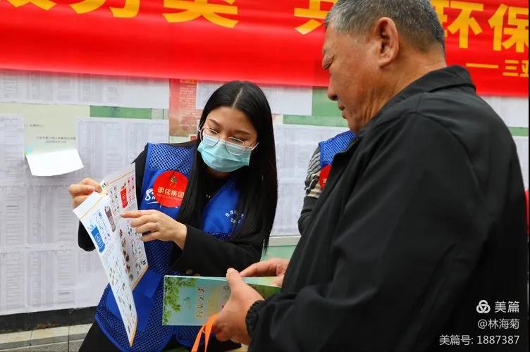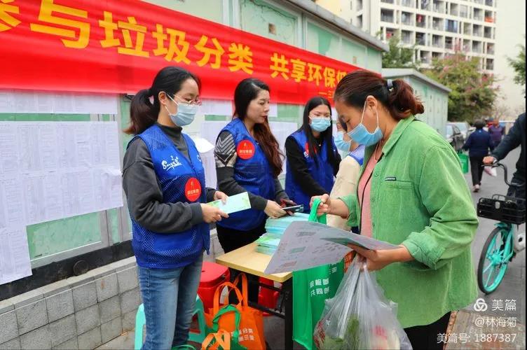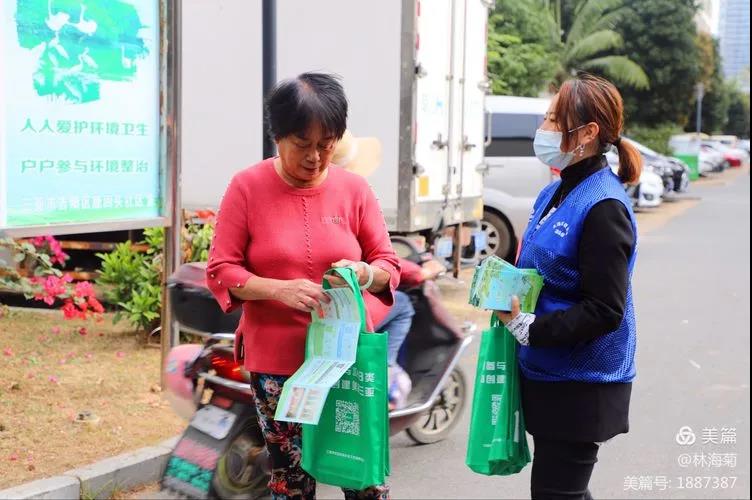 吉陽環(huán)衛(wèi)垃圾分類督導(dǎo)員與社區(qū)工作人員對居民分發(fā)垃圾分類手冊