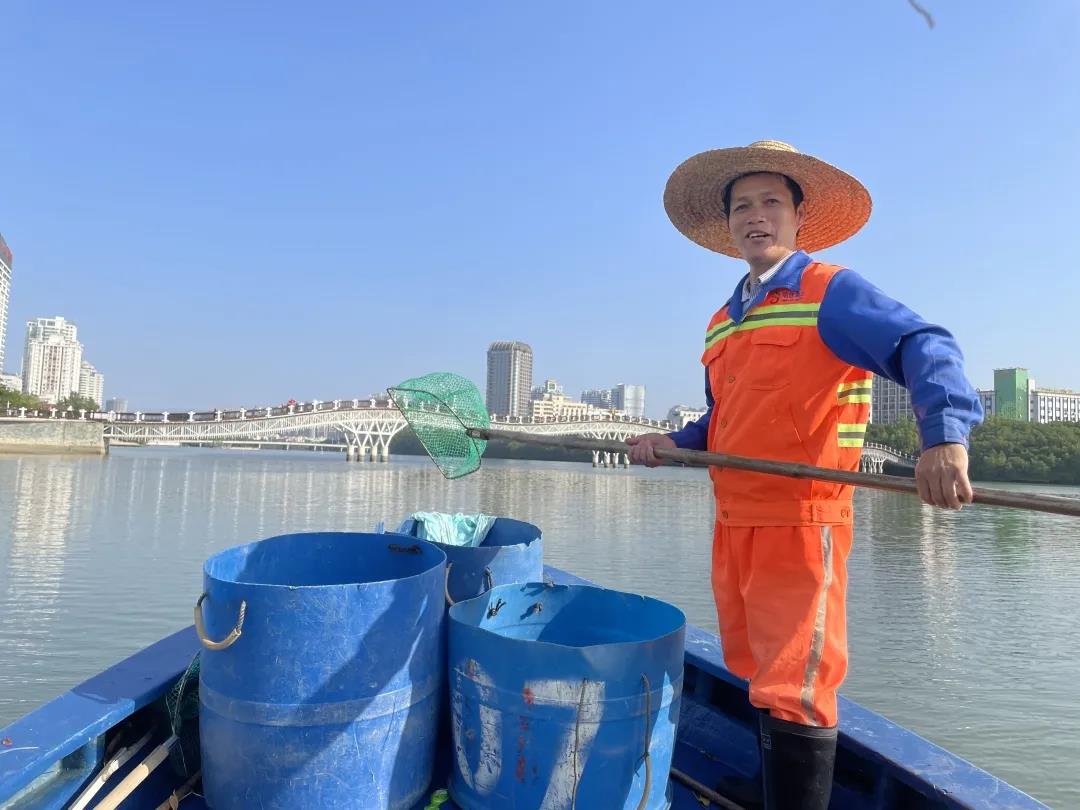 曾靈是三亞明佳園林環(huán)衛(wèi)集團天涯區(qū)環(huán)衛(wèi)二隊的一名員工,和我們平常在街邊看到清理地面垃圾的環(huán)衛(wèi)工人有所不同,他的工作是在船上完成的,每天需要站在作業(yè)船上,手持一把長柄濾網(wǎng),將漂浮在三亞河上的落葉、紙屑等垃圾打撈起來,放入專門的垃圾桶里再運輸走。記者來到曾靈的工作地點:三亞河,近距離了解他春節(jié)期間的工作是什么樣的……